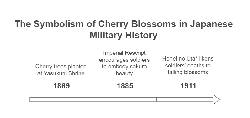 - 1885: The Imperial Rescript to Soldiers and Sailors encouraged soldiers to embody the “beauty of falling like sakura.”